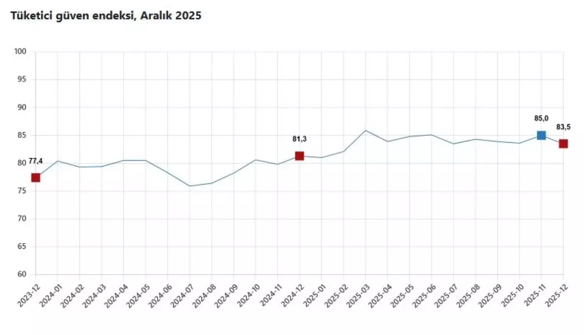 Türkiye İstatistik Kurumu (TÜİK), Aralık 2025 dönemi için yayınladığı tüketici güven endeksi verilerini 83,5 olarak duyurdu. Bu değer, bir önceki ayın 85,3 olan seviyesinden %1,8 düşüş göstermiştir. Ekonomik belirsizliklerin ve enflasyon baskısının etkisiyle tüketicilerin genel güveni bir miktar sarsılmış gibi görünüyor.