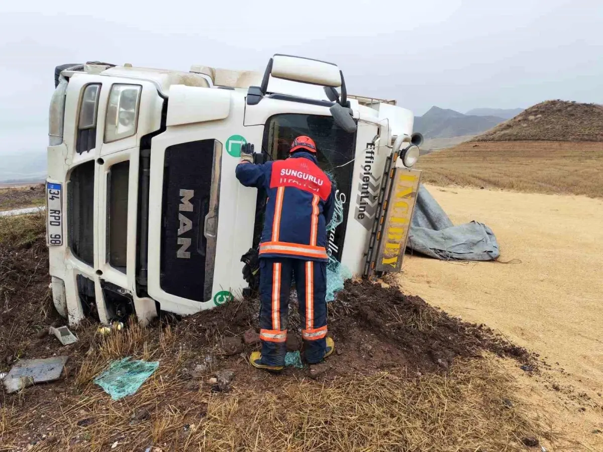 Çorum’un Sungurlu ilçesi Tuğcu köyü yolunda sabah saatlerinde yoğun yağış etkisiyle yol yüzeyi kayganlaşmıştı. Kızılırmak istikametinde seyir halinde olan 34 RPD 98 plakalı İbrahim İ. adlı şoförün kullandığı tır, virajı alamayarak kontrolünü kaybetti ve yol kenarındaki çamurlu zemine devrildi.