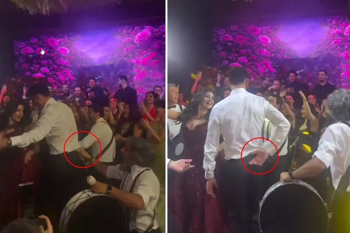 Kına gecesinin en çok konuşulan anı, davulcunun sahneye çıkıp ritmi abartılı bir şekilde çalmaya başlamasıyla ortaya çıktı. Görüntülerde, davulcunun kol hareketlerinin ve ritim vuruşlarının normalin çok üzerine çıktığı net bir şekilde görülebiliyordu. Bu durum, bir anda Samet Akaydın’ın dikkatini çekti. Samet, davulcunun aşırı hareketlerine tahammül edemeyip sahneye doğru yönelerek nazikçe durdurmaya çalıştı. O an, çevredeki misafirlerin ve davetlilerin şaşkın bakışları eşliğinde kayda alındı.