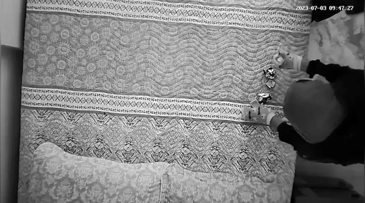 Hırsızlık anları, yatak odasında bulunan lamba içinde yer alan güvenlik kamerasına yansıdı. Kamera görüntülerinde iki maskeli şahıs çantayı alırken net bir şekilde görülebiliyor.