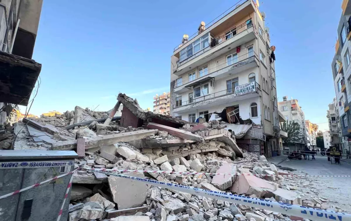 Mersin Akdeniz’de eski bir binanın yıkımı sırasında bitişik apartmanın birinci katı çökerek ciddi hasara yol açtı. Tahliye edilen sakinler ise şans eseri yaralanmadı.
