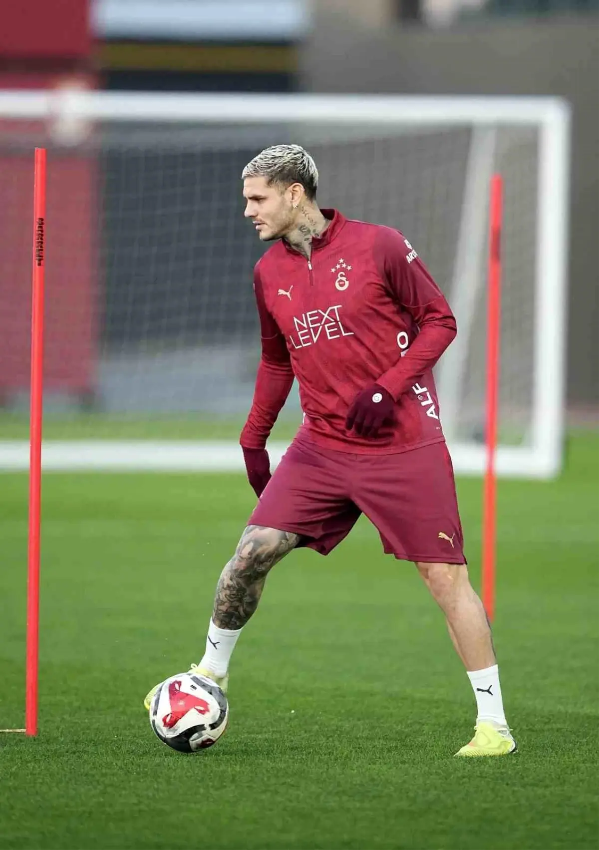Kemerburgaz Metin Oktay Tesisleri‘nde gerçekleştirilen idmanda, oyuncular önce salonda kuvvet çalışması ile ısındı. Ardından sahada dinamik ısınma rutinine geçildi.