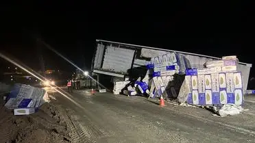 Alaca’da Tır Devrildi, Kırıkkale‑Tokat Karayolu Trafiğe Kapandı