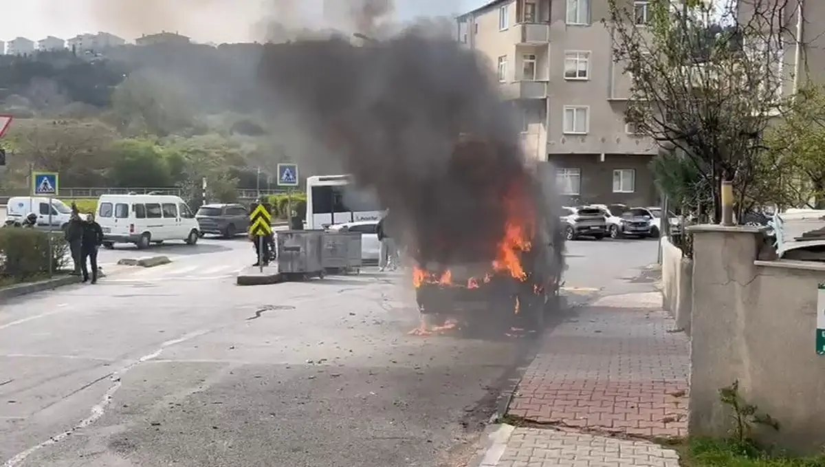 İstanbul'un Ataşehir semtinde, sabah saatlerinde park halinde bulunan hafif ticari bir araçta aniden alevler yükseldi.