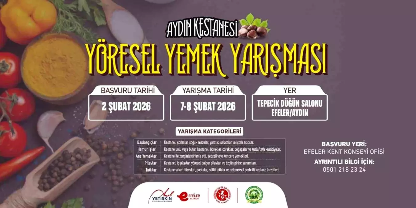 Yarışma, 15 Nisan’da Efeler Belediyesi Kültür Merkezi’nde gerçekleşecek. Katılımcılar, kestane ile hazırladıkları özgün tarifleri jüriye sunacak.