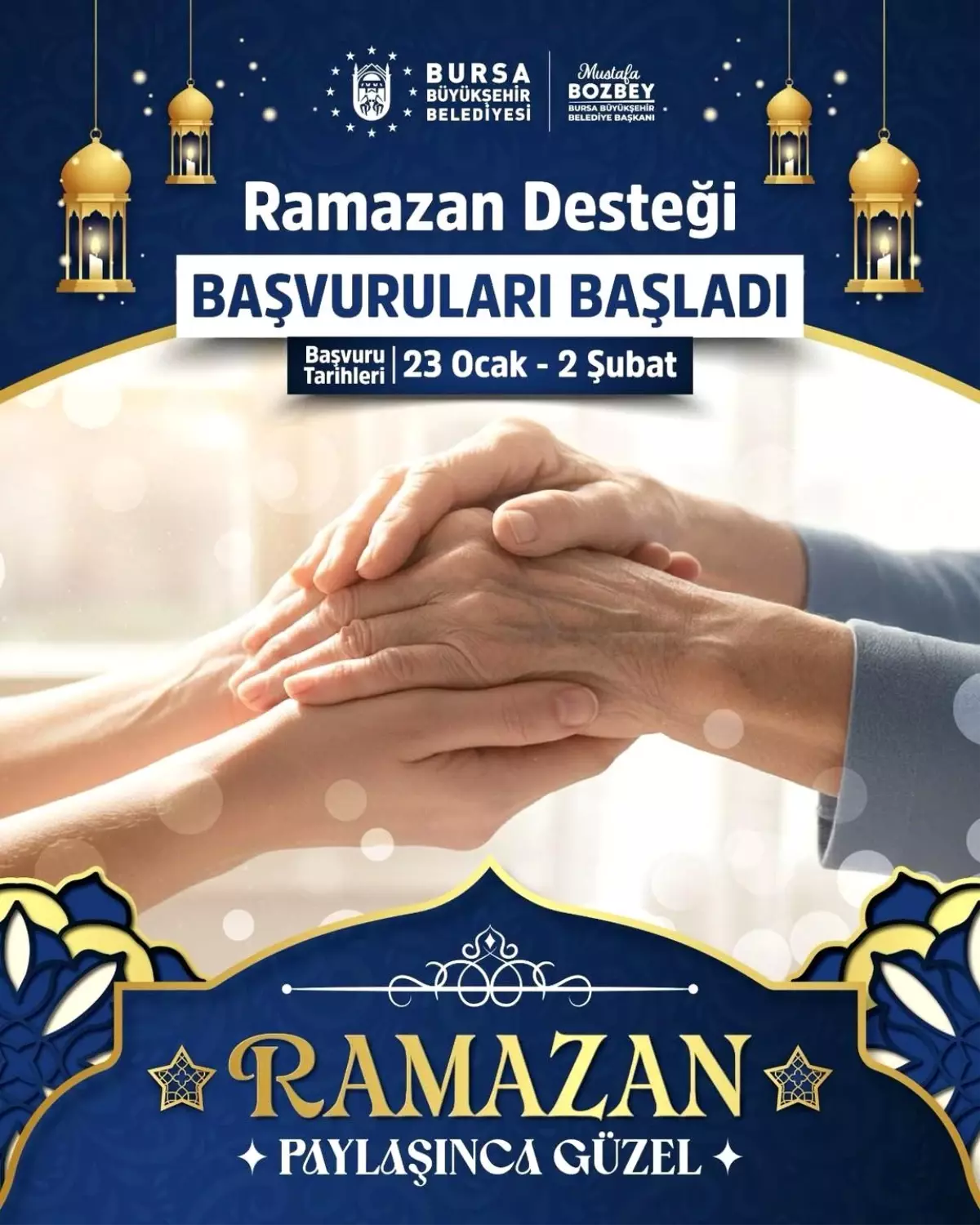 Bursa Büyükşehir Belediyesi, Ramazan ayında maddi durumu kısıtlı ailelere ve bireylere destek olmak amacıyla “Ramazan Desteği” adlı sosyal yardım kampanyasını hayata geçiriyor. Bu kapsamda gıda paketleri, temel ihtiyaç malzemeleri ve manevi destek sağlanacak.