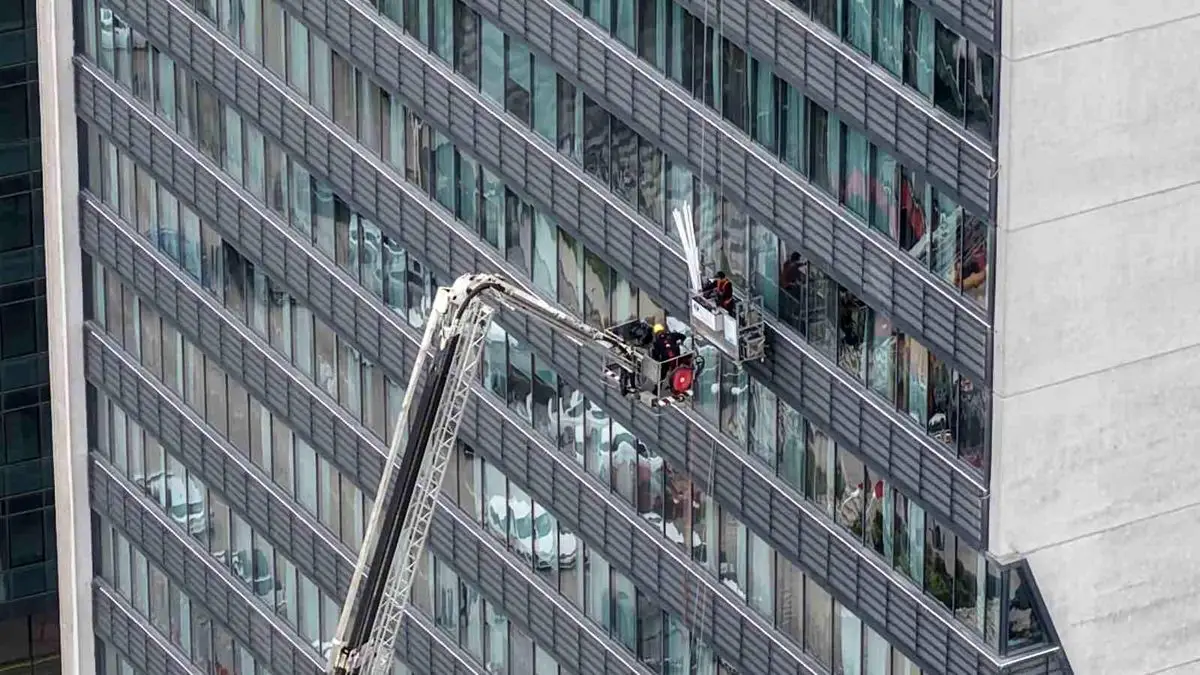 22 katlı bir hastanenin yüksek katlarındaki camları temizlemekle görevli iki işçi, asansörün aniden durması sonucu 52 metre derinlikte sıkıştı.