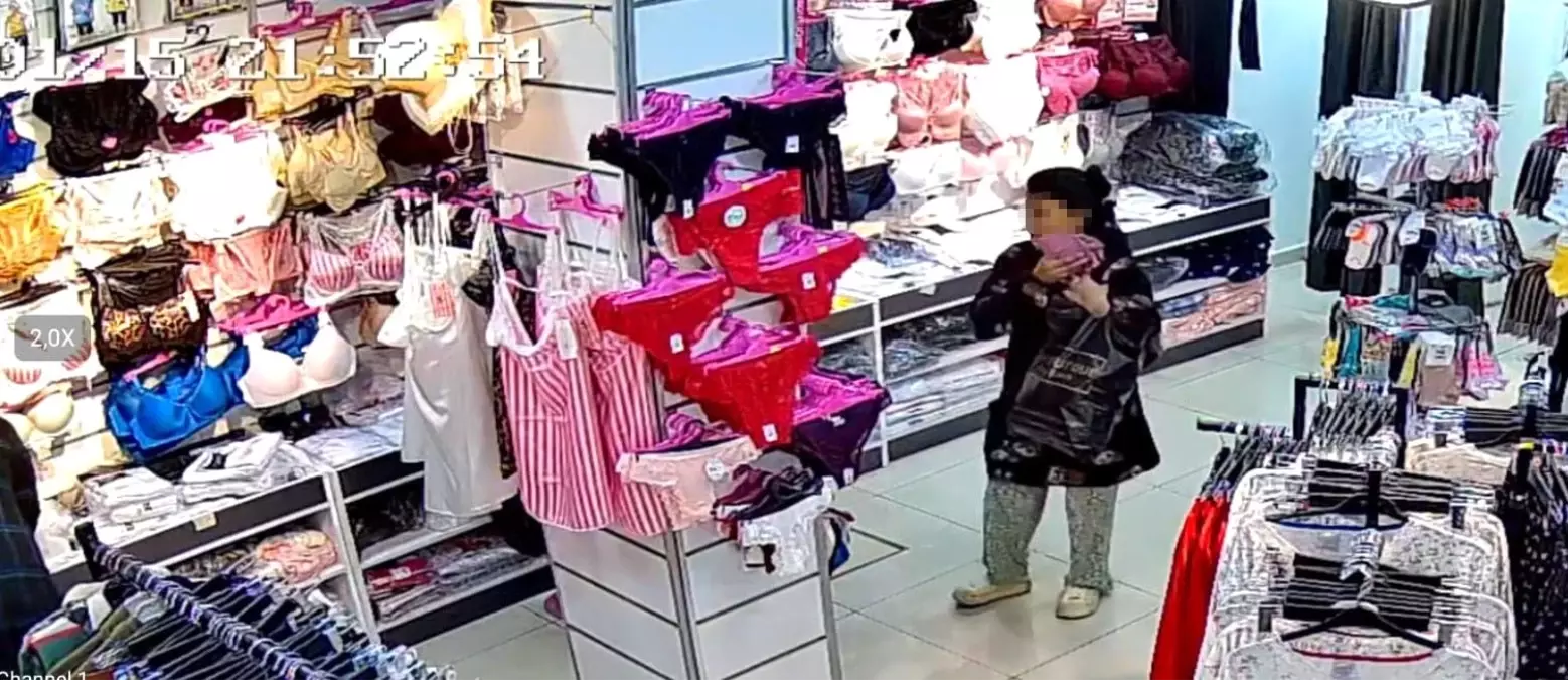 Güvenlik kamerası, hırsızlık girişimini net bir şekilde kaydetti. Kayıtlarda, genç kızların mağaza içinde dolaşarak iç çamaşırı raflarına yöneldikleri ve bir anlık tereddüt sonrası çalmaya çalıştıkları görülüyor.