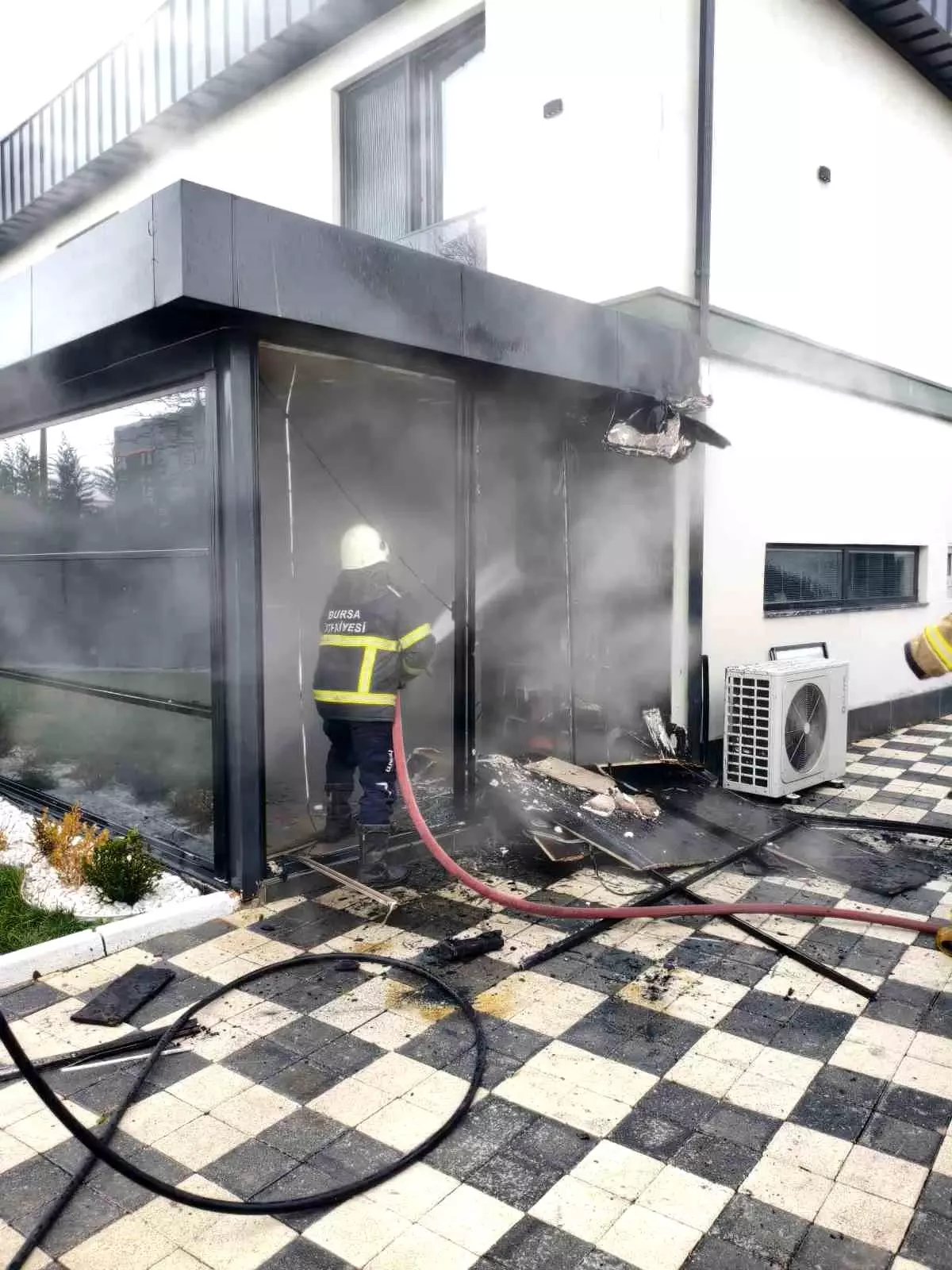 Yangın, evin oturma odasında başlayan bir duman ve alev patlamasıyla fark edildi. Ev sahibi, yangını fark eder etmez yangın söndürme tüpü ve suyla ilk müdahaleyi yaptı. Çevredeki birkaç vatandaş da hemen yardıma koşarak yangının yayılmasını engelledi.