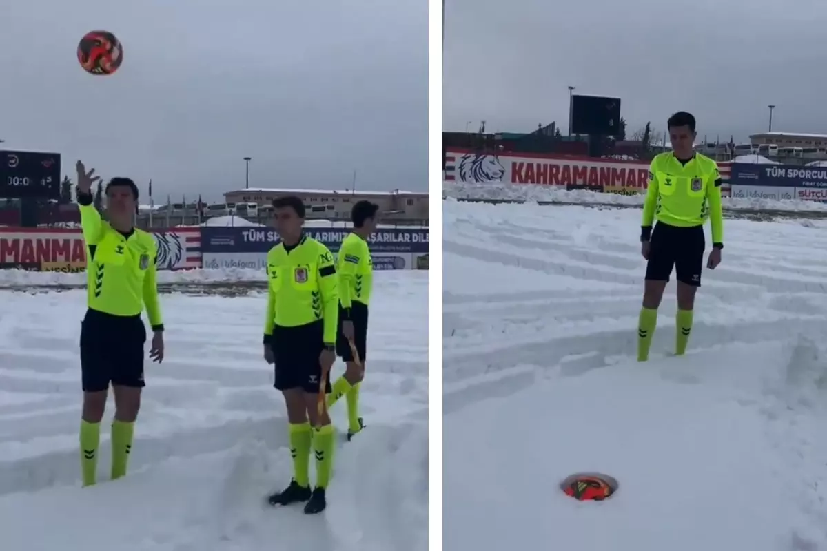 Kahramanmaraş şehir merkezindeki stadyumu, sabah saatlerinde beklenmedik bir kar yağışı kapladı. Maç için sahaya çıkan hakemler, 40 santimetreyi bulan kar tabakasını gördüklerinde büyük bir şaşkınlık yaşadı.