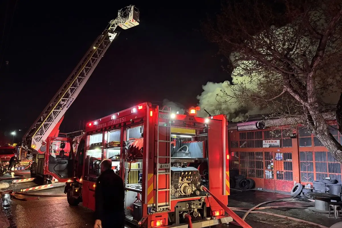 Konya Selçuklu’da Oto Lastikçi Atölyesinde Çıkan Yangın 2 Yaralıyı Bulaştı