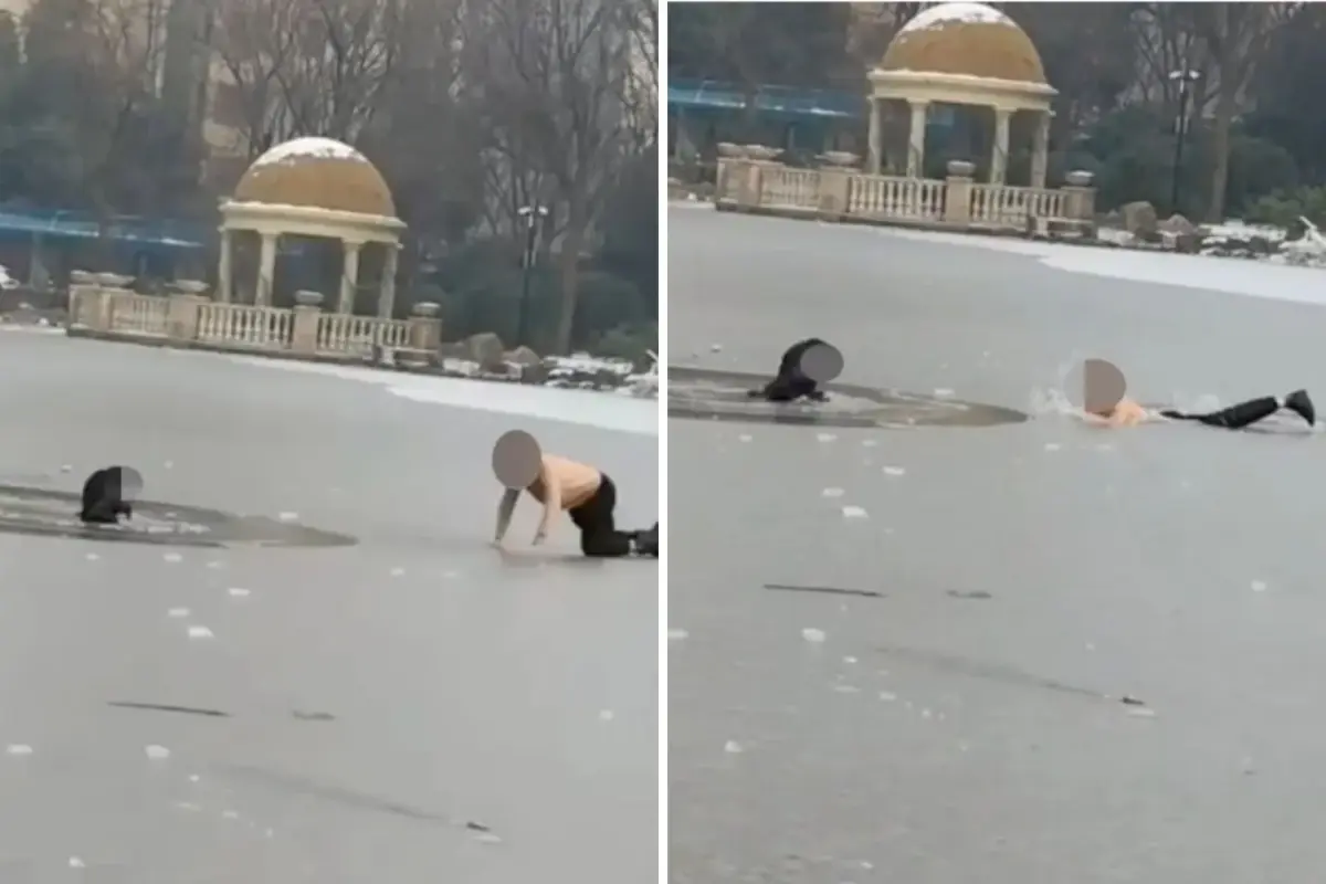 Luoyang şehrinin kalabalık bir parkında, gençler buzlu gölün üzerine oyun oynarken bir anlık dikkatsizlik sonucu buz kırıldı ve bir çocuk suya düştü. Çocuğun çığlıkları, çevredeki yetişkinlerin dikkatini çekti.