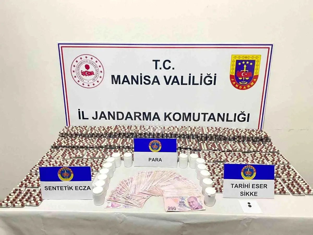 Manisa’nın Kırkağaç İlçesinde Jandarma, 4.765 Sentetik Ecza ve Tarihi Sikkeleri Ele Geçirdi