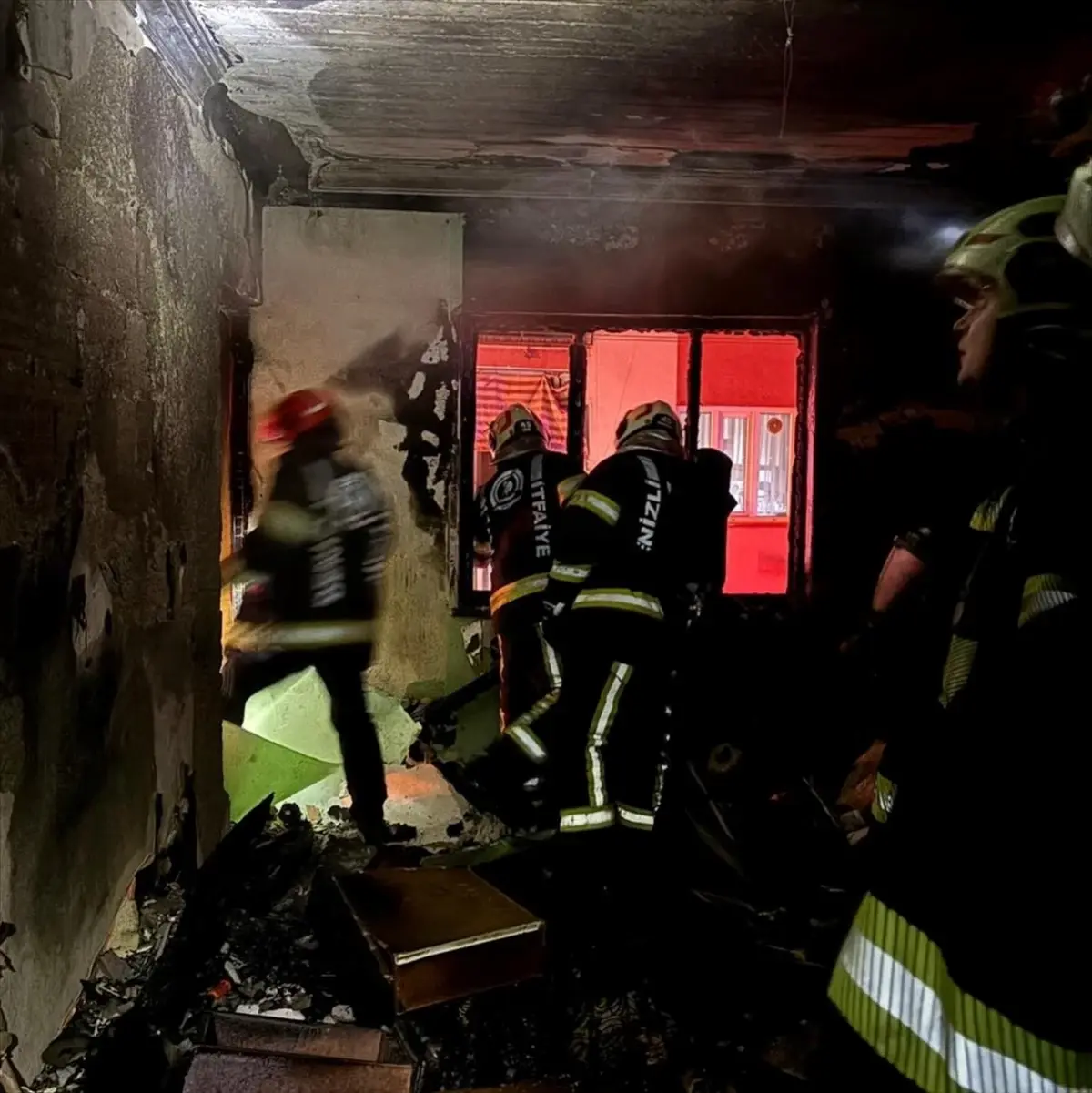 - İtfaiye ekipleri, yangına müdahale ederken aynı zamanda içerideki kişileri bulmak için özel ekipman kullandı.