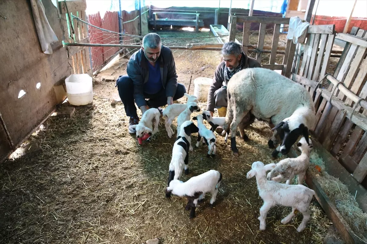Pamukkale'de Tek Seferde 9 Kuzu Doğuran Sakız Koyunu Şaşırtıyor