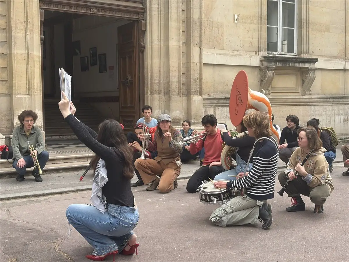 ENS öğrencileri, İsrail ile iş birliğine karşı seslerini yükselterek, Paris sokaklarında müzik eşliğinde bir dayanışma yürüyüşü gerçekleştirdi.