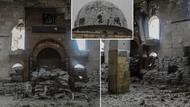 Suriye ordusunun YPG/SDG'den arındırdığı Şeyh Maksud bölgesinde, uzun yıllar terör örgütü tarafından askeri karargah olarak kullanılan Hasan Camii, temizlik operasyonunun ardından ilk kez kameralara yansıdı.