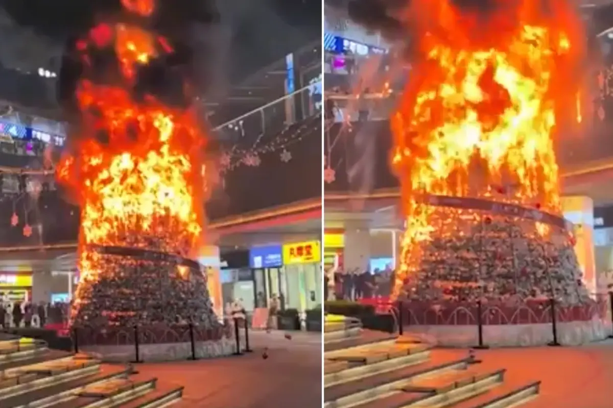 Ancak Anadolu Ajansı Teyit Hattı tarafından yapılan detaylı incelemeler, videonun Chengdu, Çindeki Sanlı Plaza’da 25 Aralık 2024 tarihinde kaydedildiğini ortaya koydu. 9 metre yüksekliğindeki Noel ağacı, aynı gün alışveriş merkezinin açık alanında çıkan bir yangın nedeniyle tutuşmuştu. Görüntülerdeki ağaç, Çin’in bir kış festivali süsü olarak hazırlanmıştı ve yangın, bir müşterinin izmarit atması sonucu tetiklenmişti.