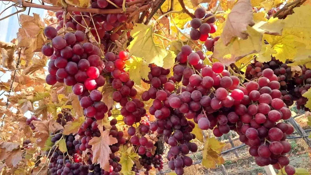 Manisa’nın Sarıgöl Ovası’nda yetişen üzümler, dalından kesilerek taze olarak pazara sürülüyor ve yılbaşı sofralarına lezzet katıyor.