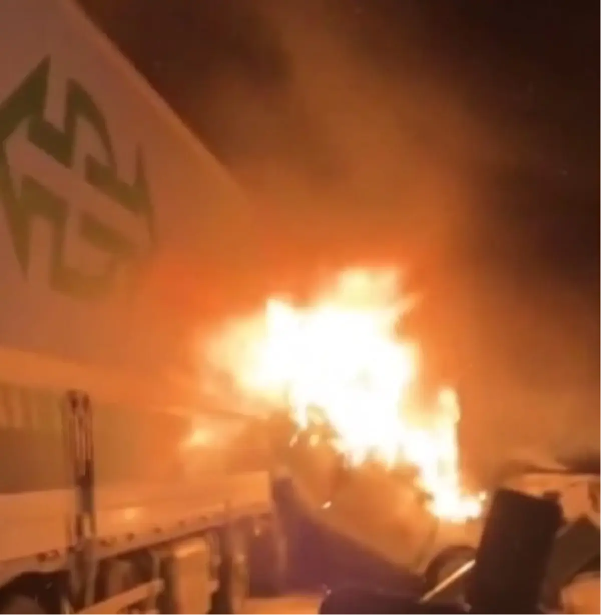 Kaza sonrası meydana gelen çarpışmaların etkisiyle yaklaşık 20 araç alev aldı. Yangın, özellikle yakıt tankı hasarı gören kamyon ve otobüslerde yoğunlaştı. İtfaiye ekipleri, yangını kontrol altına almak için 7,5 saat boyunca yoğun bir çaba sarf etti; yüksek basınçlı su jetleri ve köpük sistemleri kullanıldı. Yangının söndürülmesiyle birlikte, olay yerinde bulunan yolcuların bir kısmı duman zehirlenmesi riskine maruz kaldı.